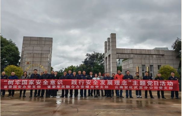 2023年10月13日,中共云南省委國(guó)安辦黨支部、省委軍民融合辦安爆處黨支部與安化武定分公司黨支部在武定分公司聯(lián)合開(kāi)展“樹(shù)牢國(guó)家安全意識(shí),踐行安全發(fā)展理念”主題黨日活動(dòng)。中共云南省委國(guó)安辦黨支部、省委軍民融合辦安爆處黨支部、武定縣工業(yè)信息化商務(wù)科學(xué)技術(shù)局、安化公司班子成員、武定分公司黨支部共計(jì)30余名黨員參加活動(dòng)。