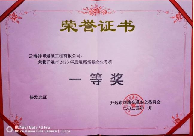 【新聞】云南神斧爆破工程有限公司榮獲開遠(yuǎn)市2023年度道路運輸企業(yè)考核一等獎